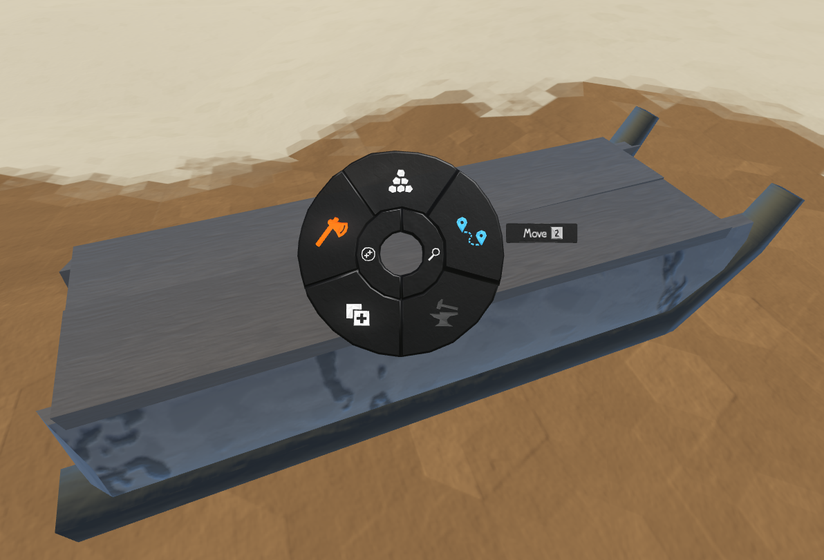 Sleds can be moved manually to any location using the "Move" icon on the radial menu. Simply click "Move," then select the desired destination, and a Sapien will relocate the sled.